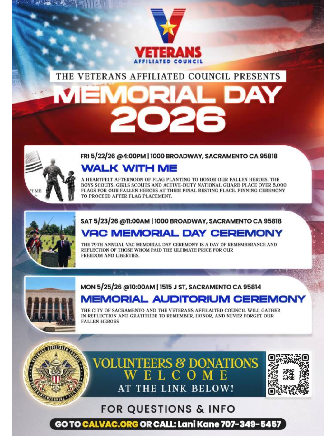 For more than a century, the Veterans Affiliated Council (VAC) has stood as a steadfast pillar of service, unity, and advocacy for California’s veterans. Founded in 1921 by Governor Hiram Johnson, the Council was created as a singular body to represent all Veteran Service Organizations, and for over 100 years it has carried forward that mission with honor and resolve. Each year, the VAC gathers communities to celebrate service and sacrifice. On Veterans Day, thousands come together to witness a day of remembrance filled with tradition: a parade through the heart of our capital, military flyovers, a solemn ceremony, stirring entertainment, and a classic car show, all serving as a living tribute to those who have worn the uniform.